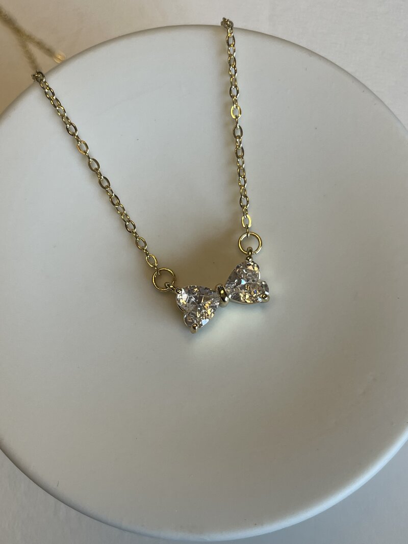 Collana placcata in oro con pendente a fiocco realizzato in zirconia cubica molto luminosa e brillante.